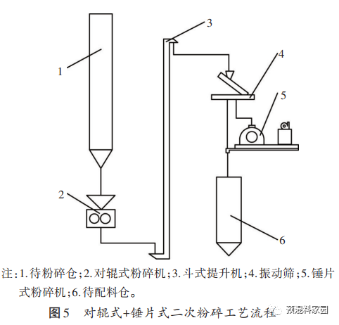 故粉碎設(shè)備配置采用對輥式粉碎機(jī)+錘片式粉碎最為合適,見圖 5。