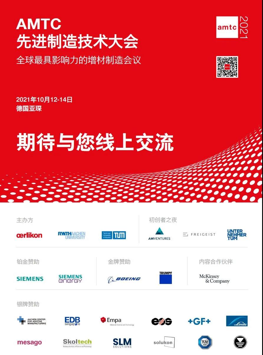 我們非常高興地宣布,全球最具影響力的慕尼黑增材制造技術(shù)會議(MTC)隨著號召力不斷擴(kuò)大,現(xiàn)更名為先進(jìn)增材制造技術(shù)大會(AMTC),并將于2021年10月12至14日在德國亞琛Eurogress中心舉辦。來自企業(yè)、院校、政府機(jī)構(gòu)及媒體行業(yè)的專家與領(lǐng)袖,將在這里展開為期三天的熱烈討論,思想碰撞與互動。
